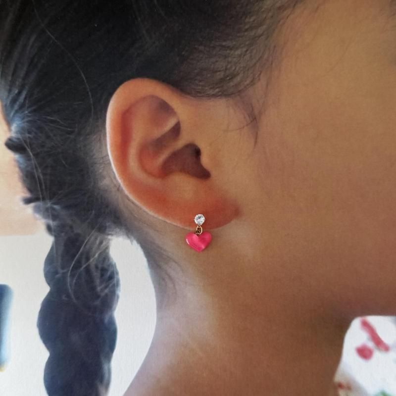 シールで簡単に耳に貼れる「子供用の貼るイヤリング」です。本物のピアスのような可愛いデザインで、おしゃれに憧れる女の子にぴったり。肌に優しく痛くないので、長時間つけていても快適!ママみたいにピアスをつけたい女の子におすすめのアクセサリーです。