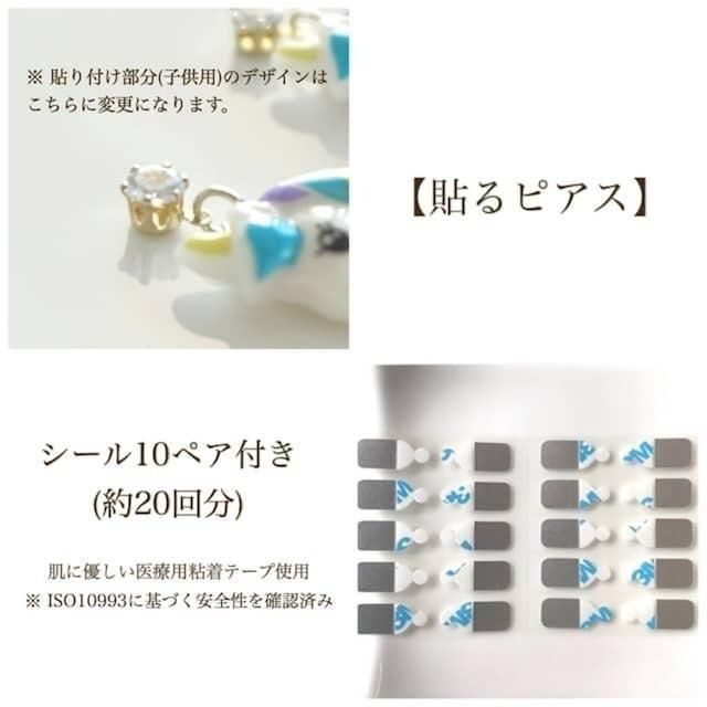 当店の貼るピアスは、3M社製の医療用粘着テープを使用。デリケートな肌にも優しく安心してお使いいただけます。強い粘着力で活発なお子様でも取れにくい。シール10ペア付きで繰り返し楽しめます。お子様の特別なプレゼントにもぴったりです!幼稚園くらいのキッズから小学生や中学生のガールズ向けとしてもおすすめです。子供が喜ぶ可愛いらしいデザインを豊富に揃えています。お気に入りのデザインで、おしゃれを楽しんでください☆