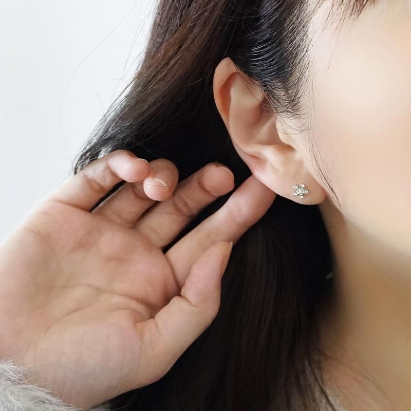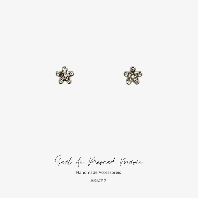 小さな花モチーフの、スタッドタイプ貼るピアスです。きらめくストーンが耳元でさりげなく輝き、女性らしい上品さを引き立てます。小さなサイズで普段使いからお出かけまで幅広く活躍。