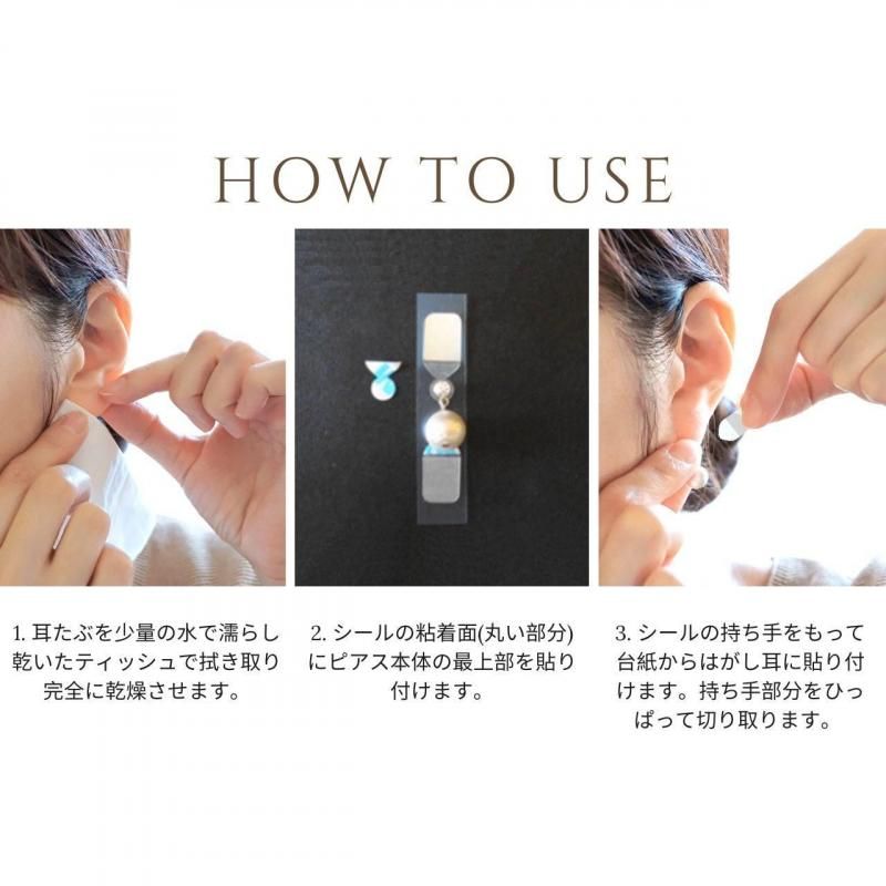 貼るピアスは、イヤリングが痛い方や金属アレルギーでピアスを開けられない方におすすめの「貼るイヤリング」です。専用シールを使って耳に貼るだけで、気軽にピアス風のおしゃれを楽しめます。シールを貼り替えれば、何度でも繰り返し使えます。ピアスに見えるイヤリング・ 痛くないイヤリング として安心してお使いいただけます。