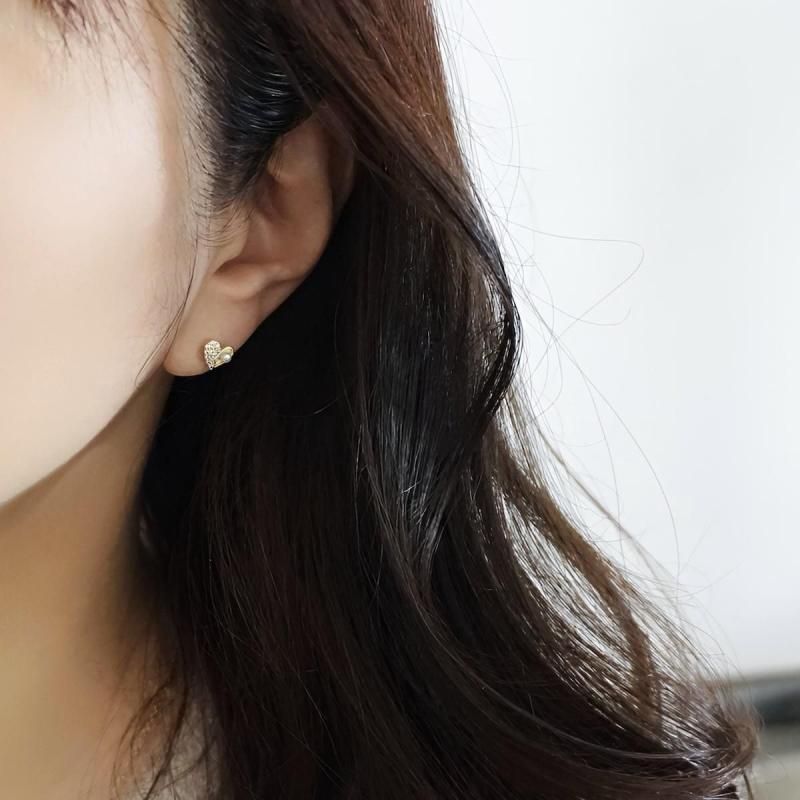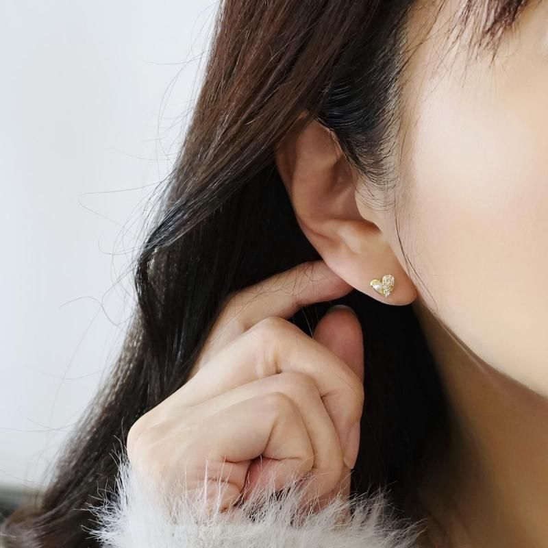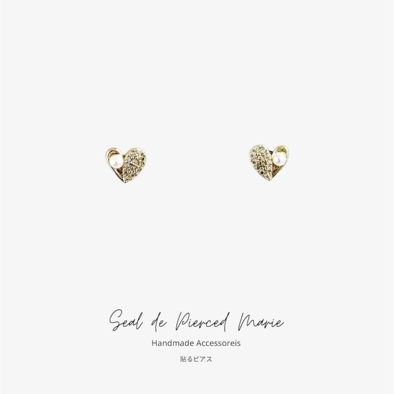 小さなハートにきらめくガラスビジューとパールをあしらった、繊細でフェミニンな貼るピアスです。上品な輝きが耳元にそっと華やかさを添え、大人かわいい印象に。
